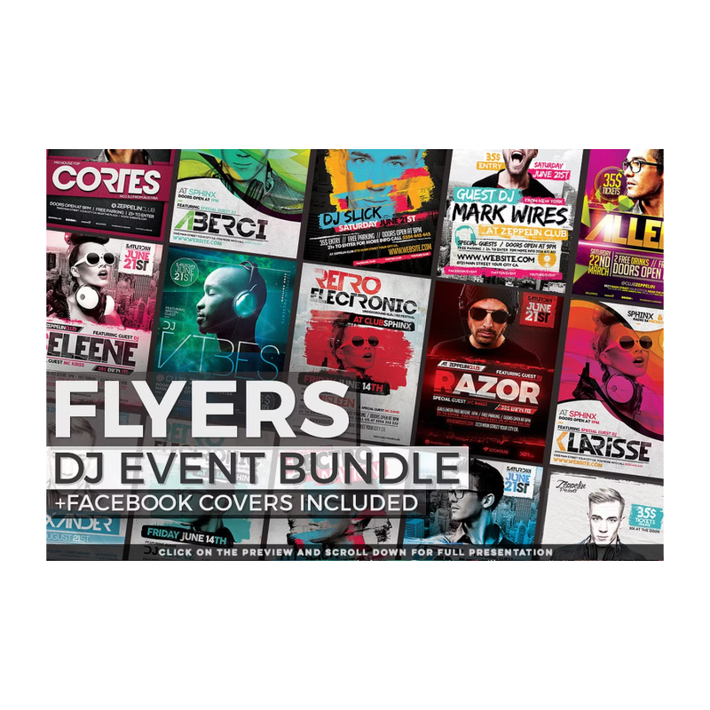ستجد في الداخل قوالب تتراوح من أحداث DJ الكهربائية إلى حفلات الشواء أو العطلات. لذلك إما أن تقوم بتصميم منشورات للمهرجانات المستقلة أو عيد الميلاد أو بطولات كرة القدم ، فهذه هي الحزمة المناسبة لك! مع تصميمات 82+ نشرة إعلانية مع أغلفة Facebook مطابقة ومعظم القوالب ذات إصدارات ملونة مختلفة ، ستجد كل ما تحتاجه في مشاريع النشرات / الملصقات المستقبلية.