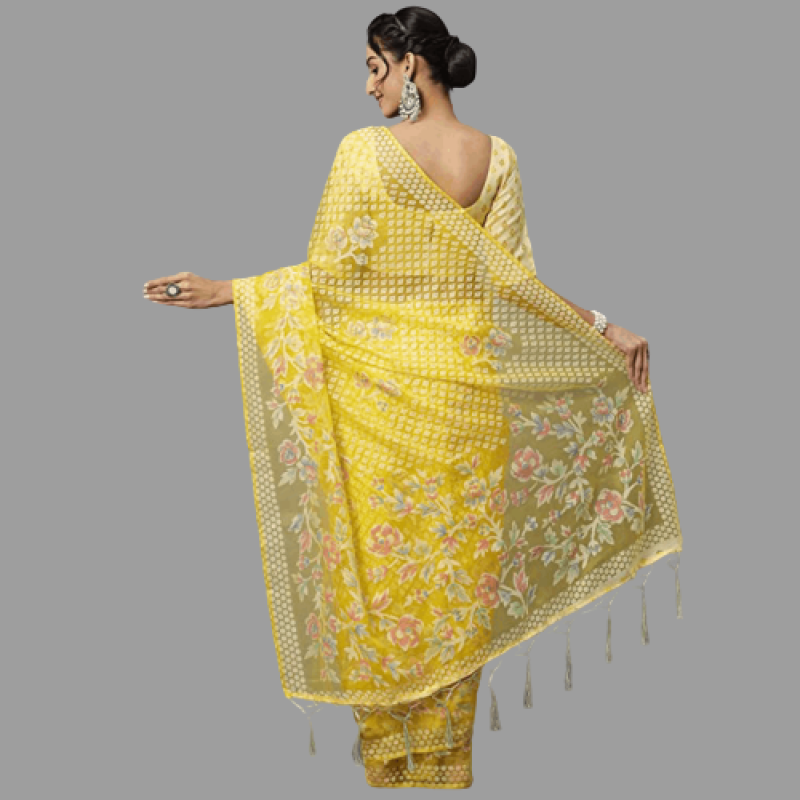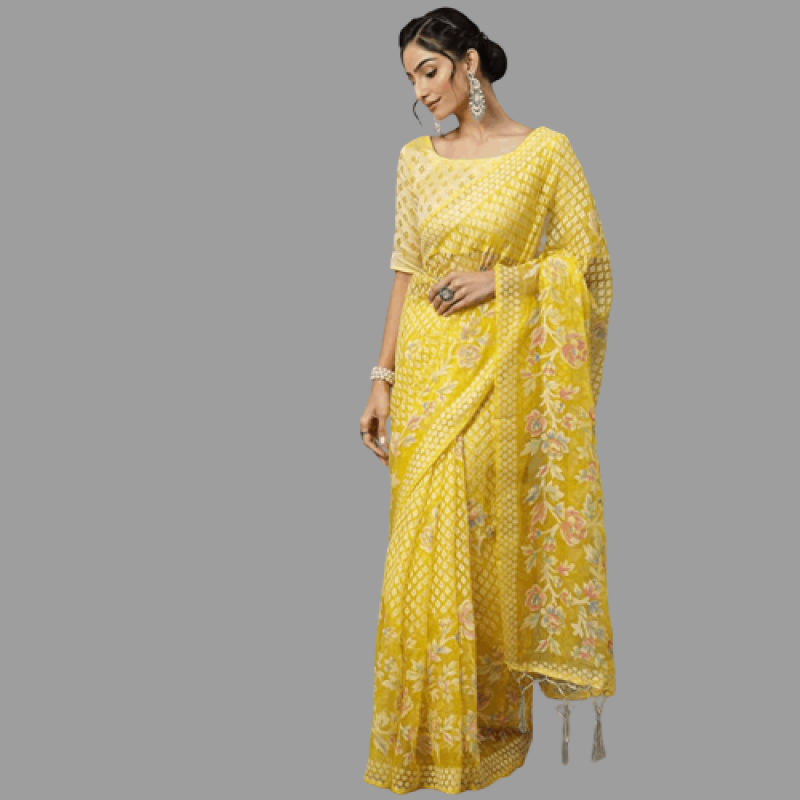 AKHILAM المرأة براسو المطبوع بالزهور شاندري ساري مع قطعة بلوزة غير مخيط