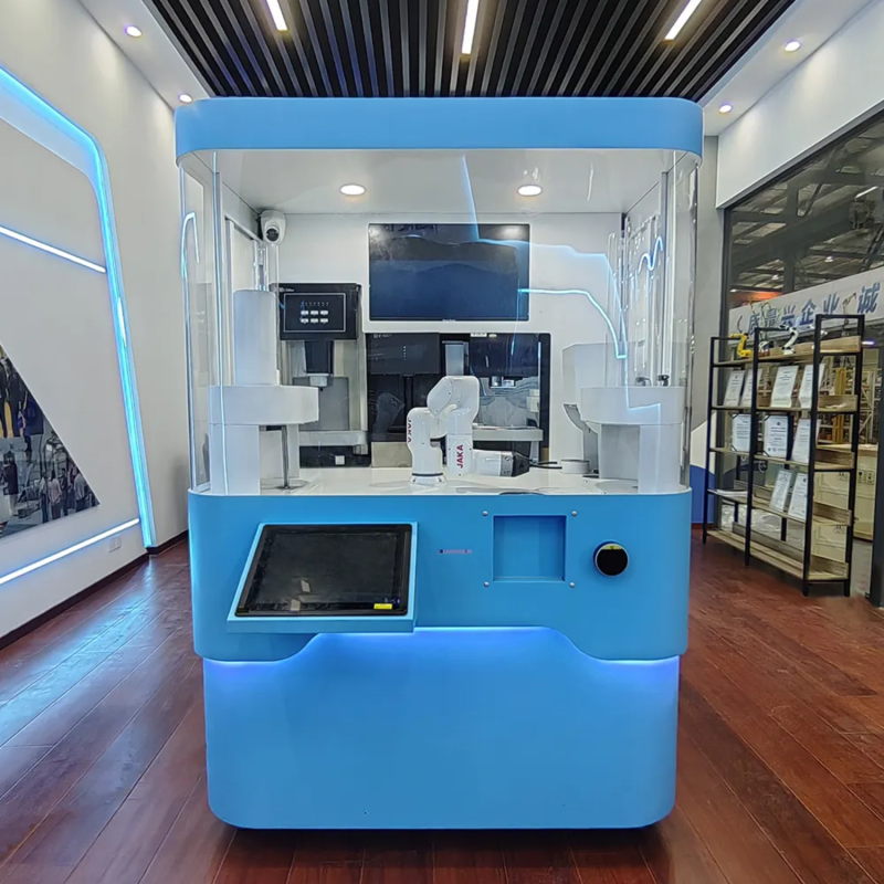 • تجربة صنع القهوة بدون مجهود: تتيح آلة بيع القهوة الروبوتية هذه ، المدعومة من روبوت تعاوني مكون من 6 محاور ، للمستخدمين الاستمتاع بالقهوة الطازجة بأقل جهد ممكن ، مما يجعلها إضافة مثالية للفنادق والمطاعم والمقاهي.
