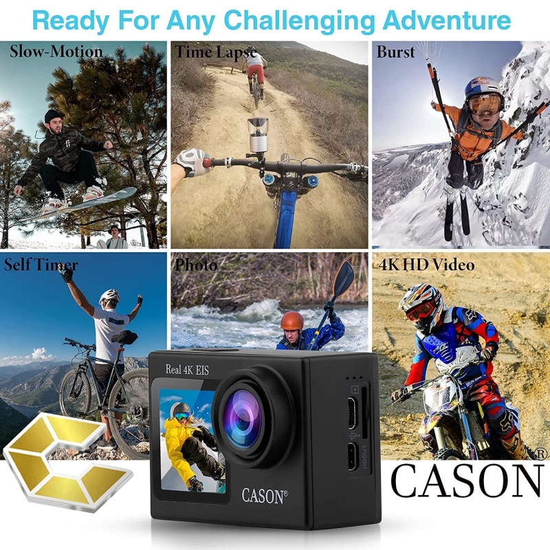 CASON CS6 Real 4K كاميرا رياضية مزدوجة الشاشة مقاومة للماء