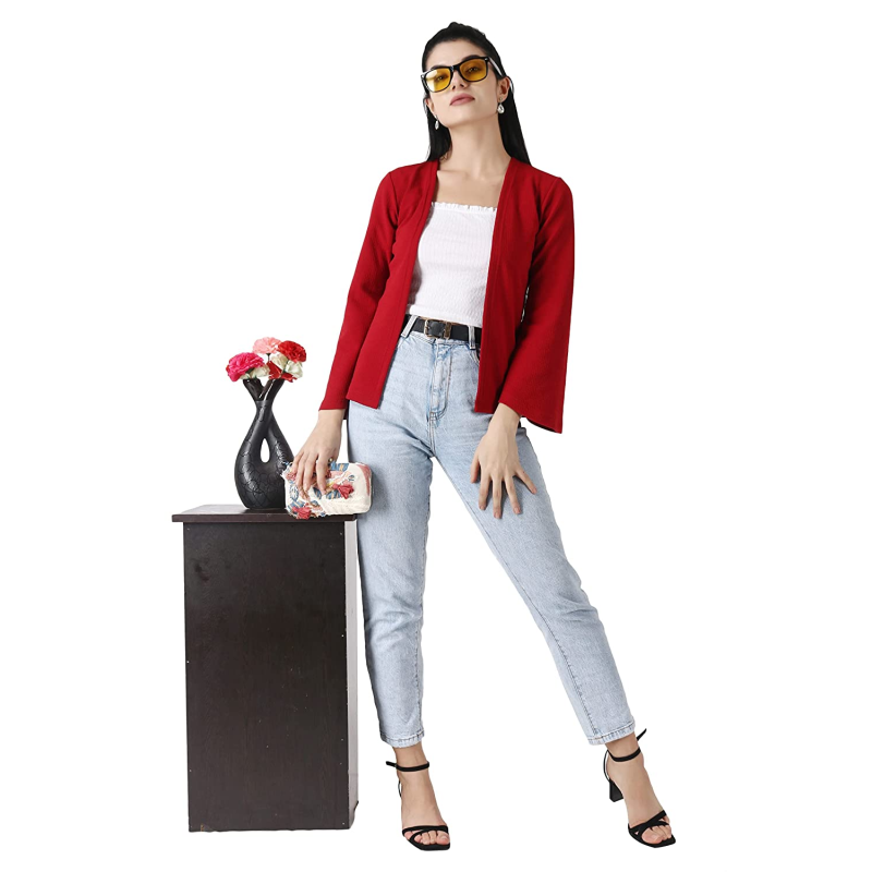 POPWINGS Women Red Regular Fit Blazer