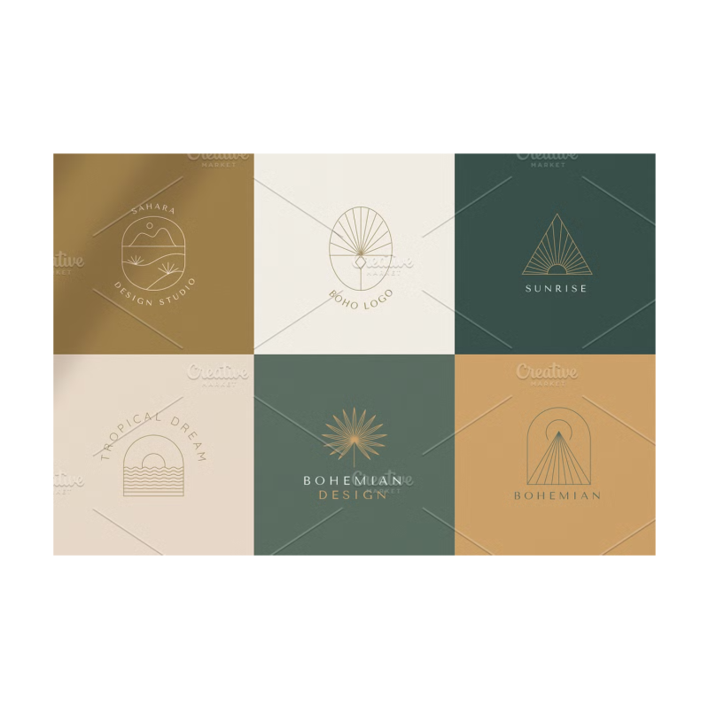 Bohemian logos - a new set of vector design elements and templates. Abstract logos and branding elements in trendy linear minimal style, emblems, and badges for design studios, shops, female businesses, and handcrafted products.