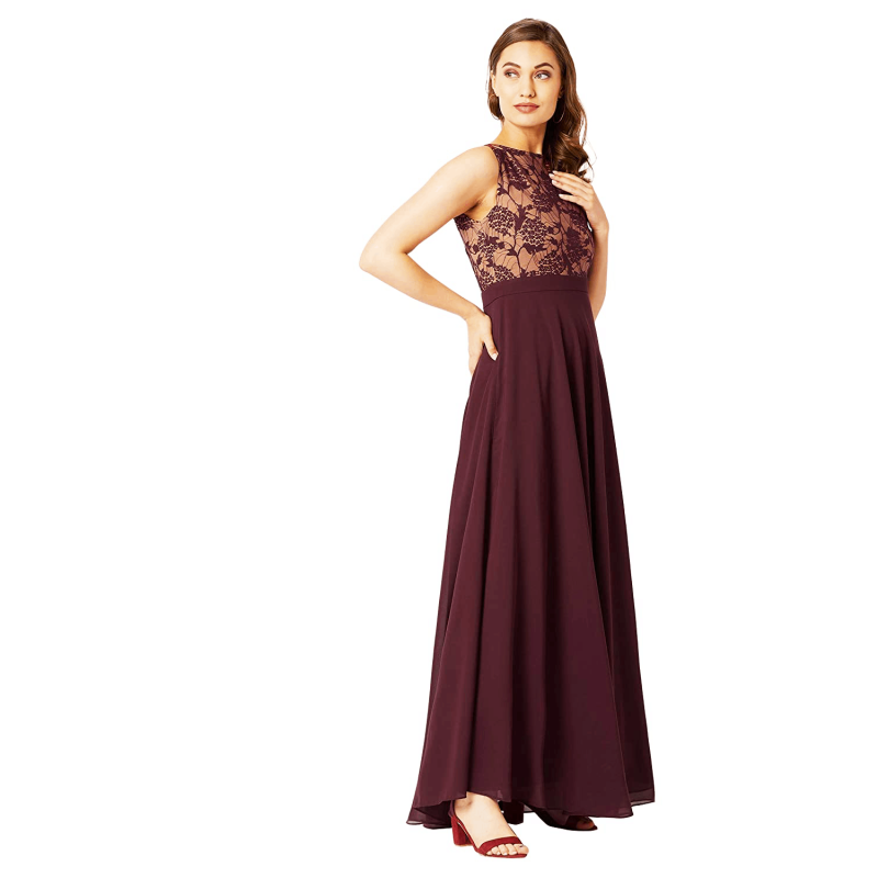 ملكة جمال تشيس المرأة الخزامى جولة الرقبة بلا أكمام الصلبة الدانتيل تراكب فستان ماكسي