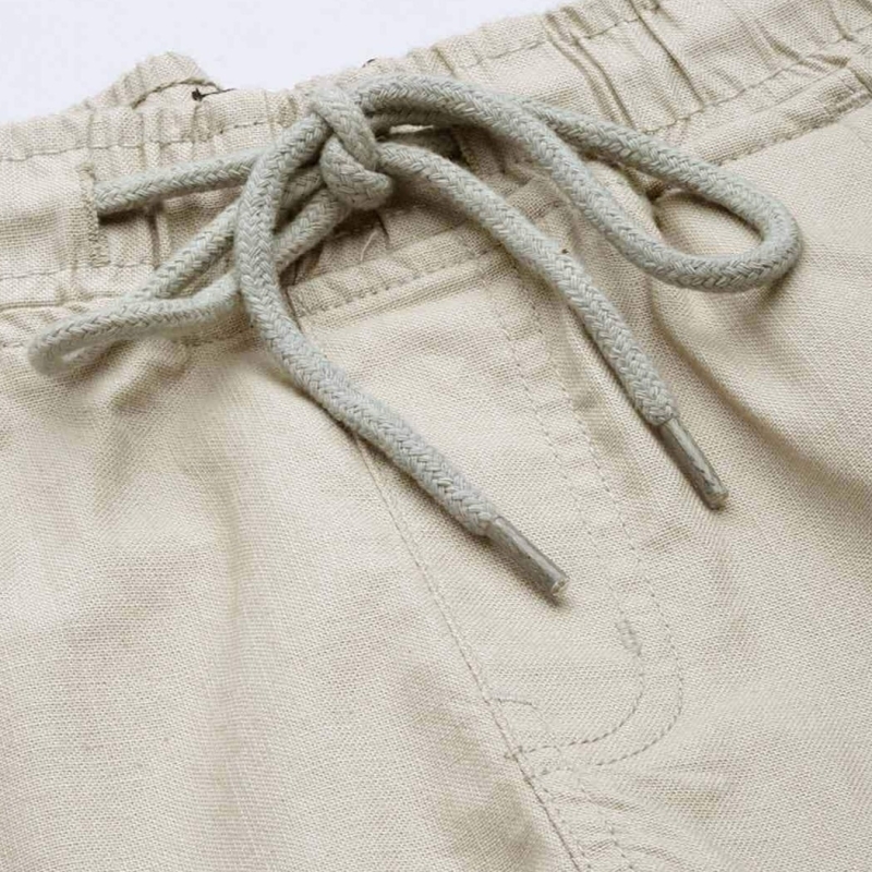 بنطال رياضي أبيض صلب متوسط الارتفاع، برباط تضييق للإغلاق، أربعة جيوب