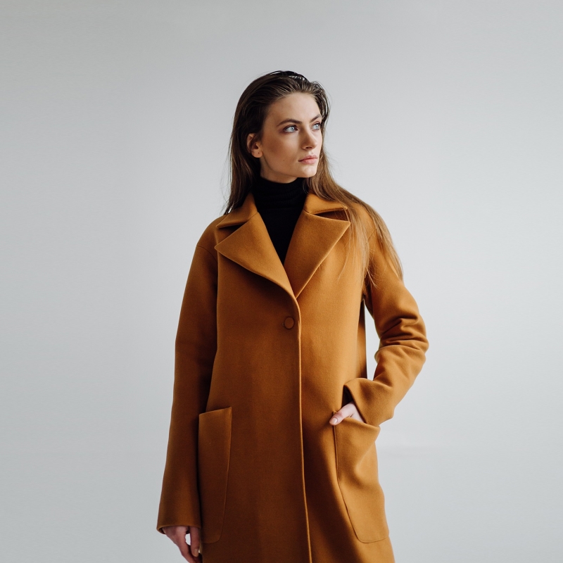 المرأة الخردل الأصفر الصلبة سليم صالح معطف خندق الخط الطويل