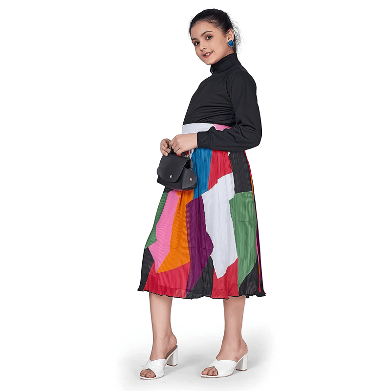Girl’s Off White Lycra Top with Accordion Pleated Georgette Skirt Clothing Set